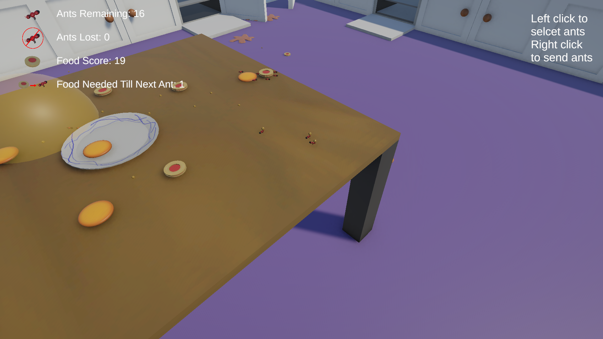 - When ants return to home, more ants will spawn, allowing you to progress from carrying crumbs to full biscuits