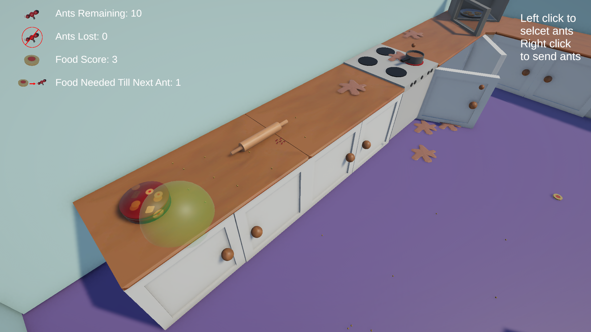 Search around the kitchen and guide the ants towards biscuits to bring back to the colony. But remember, strength in numbers and watch out for danger!